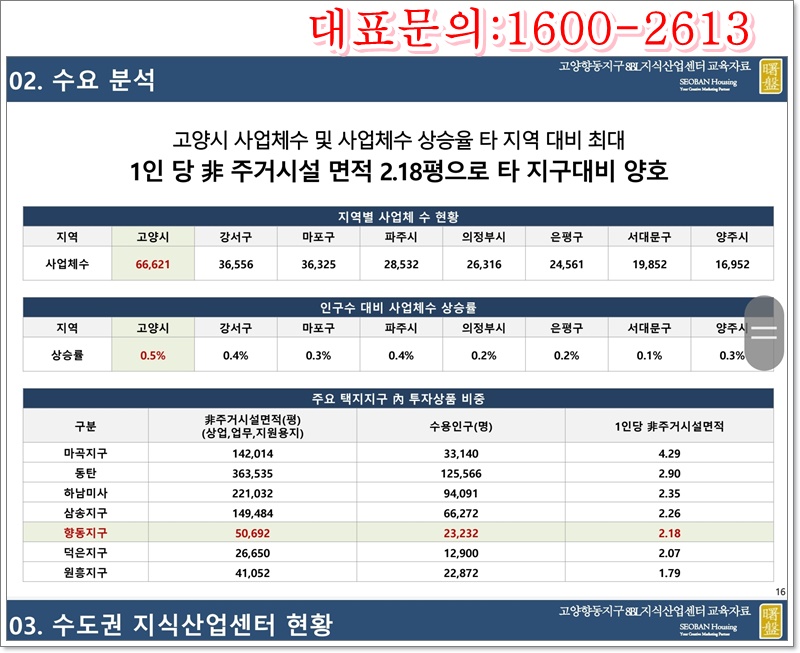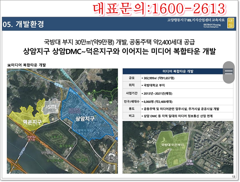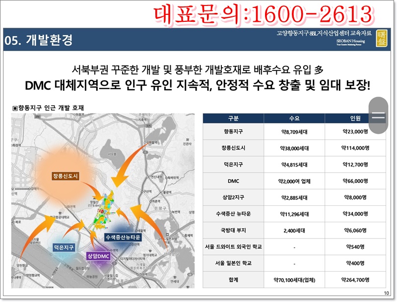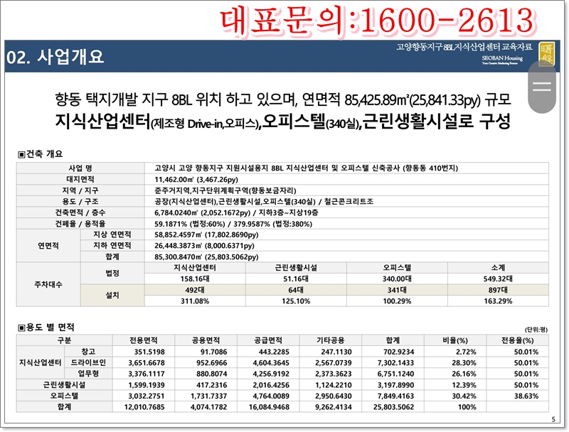 지식산업센터 14,650평/근린생활시설 3,233평/오피스텔 7,796평 으로 구성된 향동지구에 오피스텔