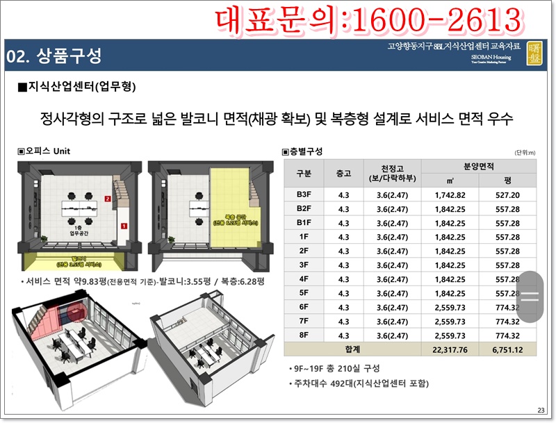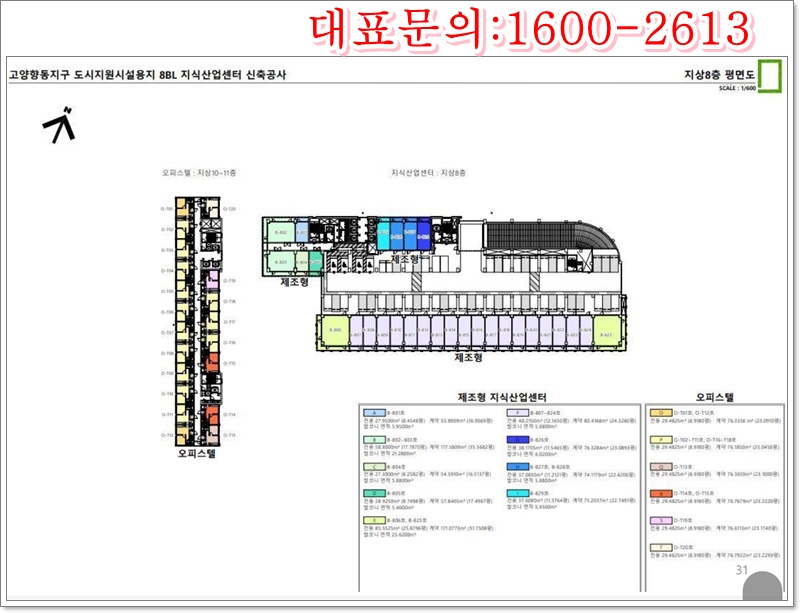 까지 공급이 가능한 유일한 지식산업센터 입니다.오피스텔은 340실로 전용 8.09평의 1.5룸 입니다.