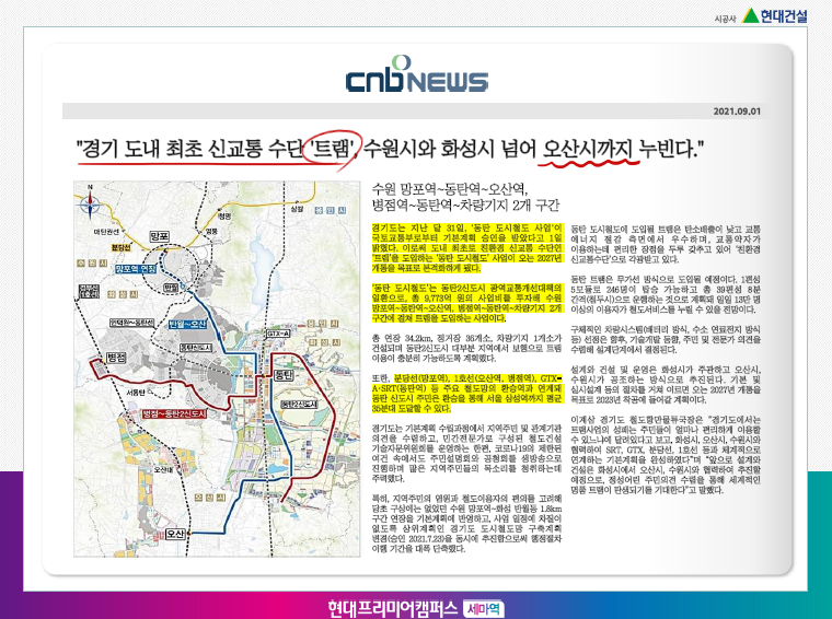 경기도내 최초 신교통수단으로 오산에서 수원까지도 트램으로 연결이 되는 것입니다.