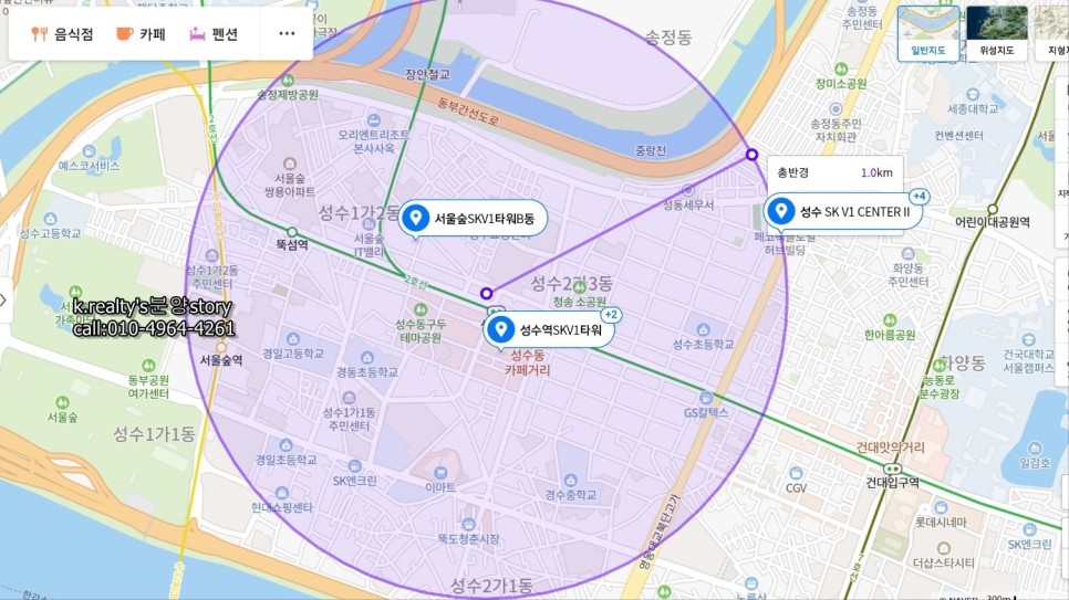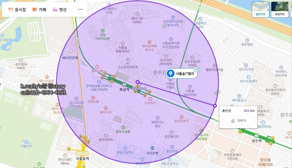 뚝섬역 인근의 지식산업센터 역시 반경 1km 정도에 위치합니다. 뚝섬역에서 서울숲IT밸리까지 약 230m 정도 입니다.