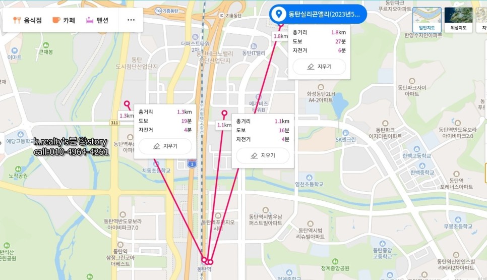 *거리를 직선거리로 측정을 해서 실제로는 조금더 늘어날수 밖에 없습니다. 단 서울 시내의 지식산업센터,오산의 현대프리미어캠퍼스 세마역은