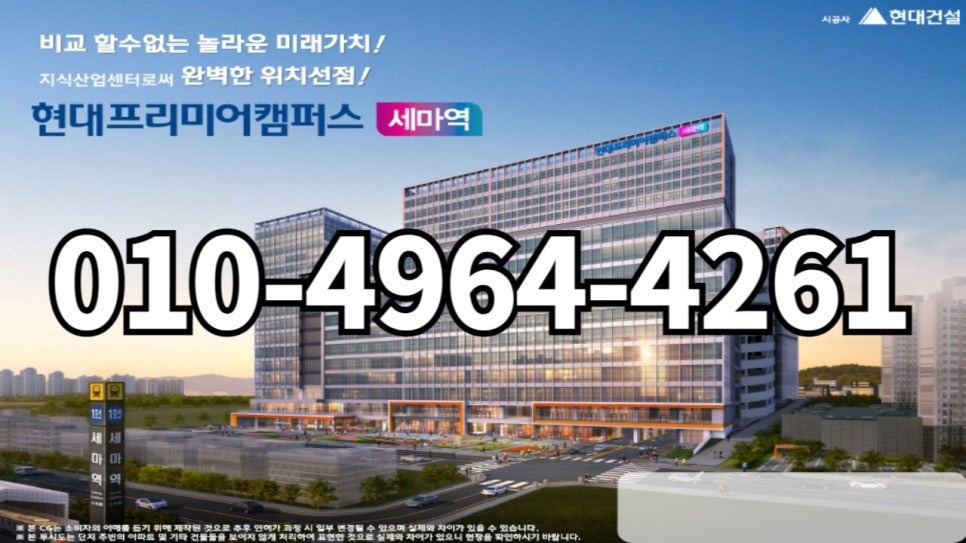 경기남부 명품지산 현대프리미어캠퍼스세마역 시행사 보유분 마지막 특별공급 중 입니다.